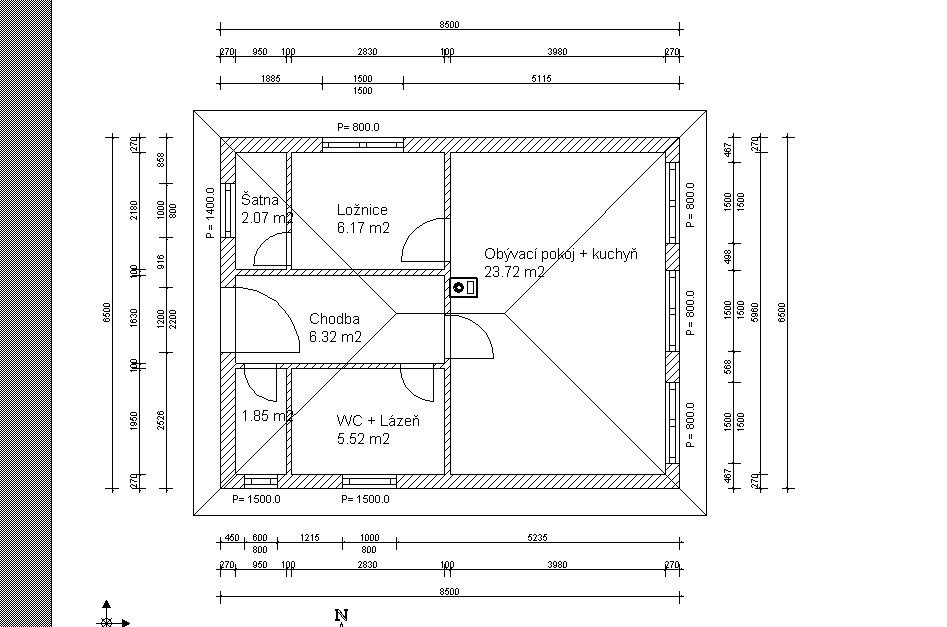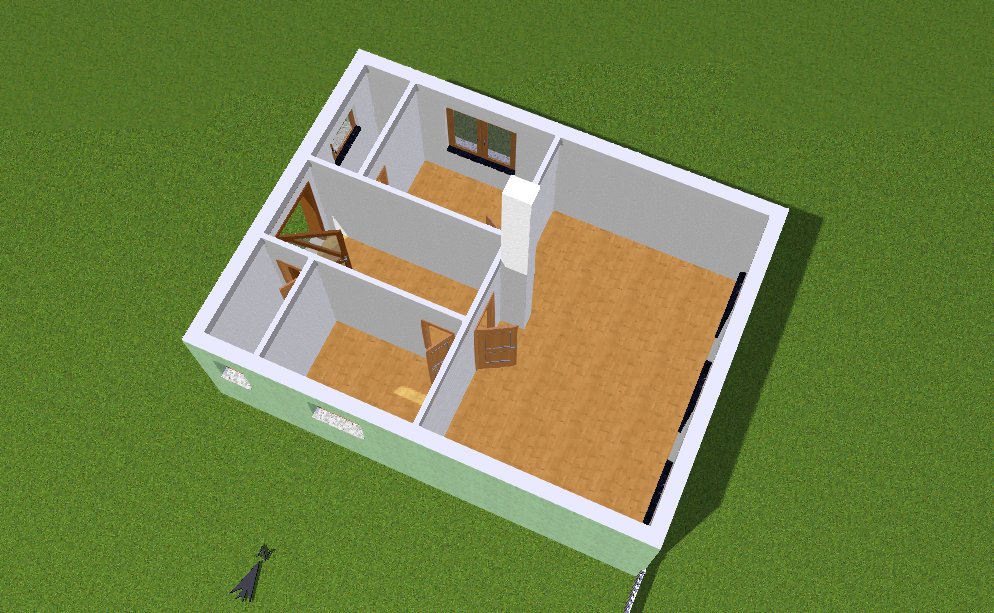 Se zastavěnou plochou 55 m2 , což splňuje požadavky pro pohodlné bydlení 2 -3 členné rodiny. Typ domu je jednopodlažní nepodsklepený rodinný dům.